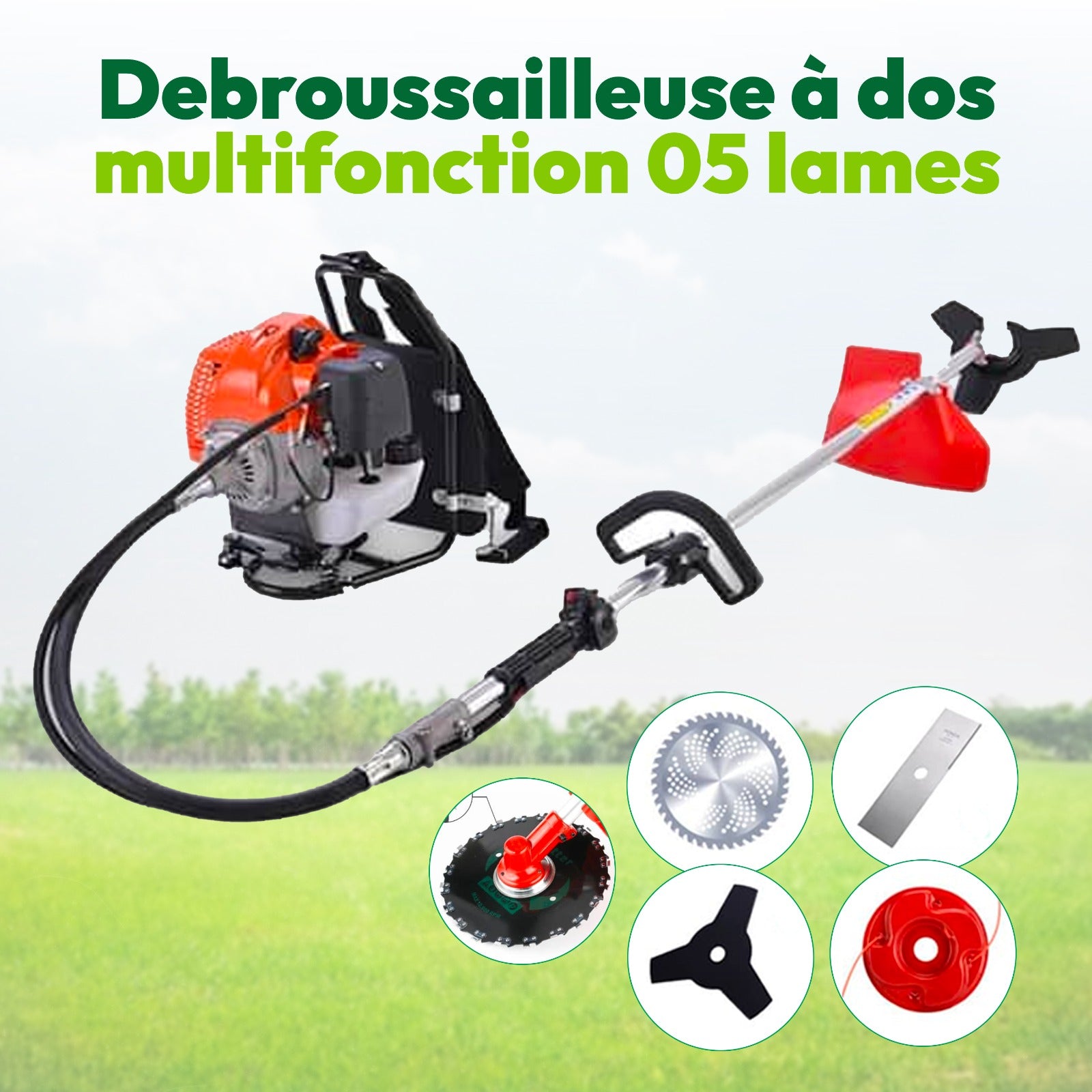 Débrousailleuse à Dos Multifonction 05 en 1 + 12 Mois de Garantie